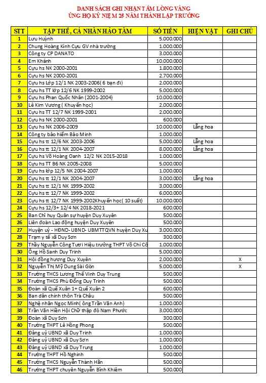 DANH SÁCH CÁC NHÀ HẢO TÂM TRONG DỊP KỈ NIỆM 25 NĂM 08-09-2024